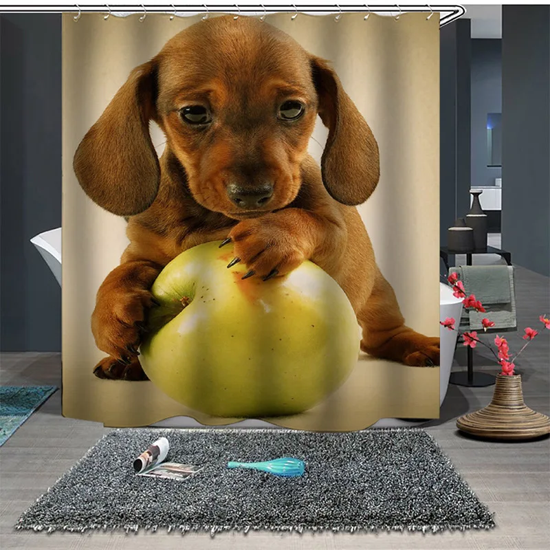 Cute Dog Shower Curtain Polyester Mould Proof Bath Shower Curtain Waterproof Shower Curtain Bathroo