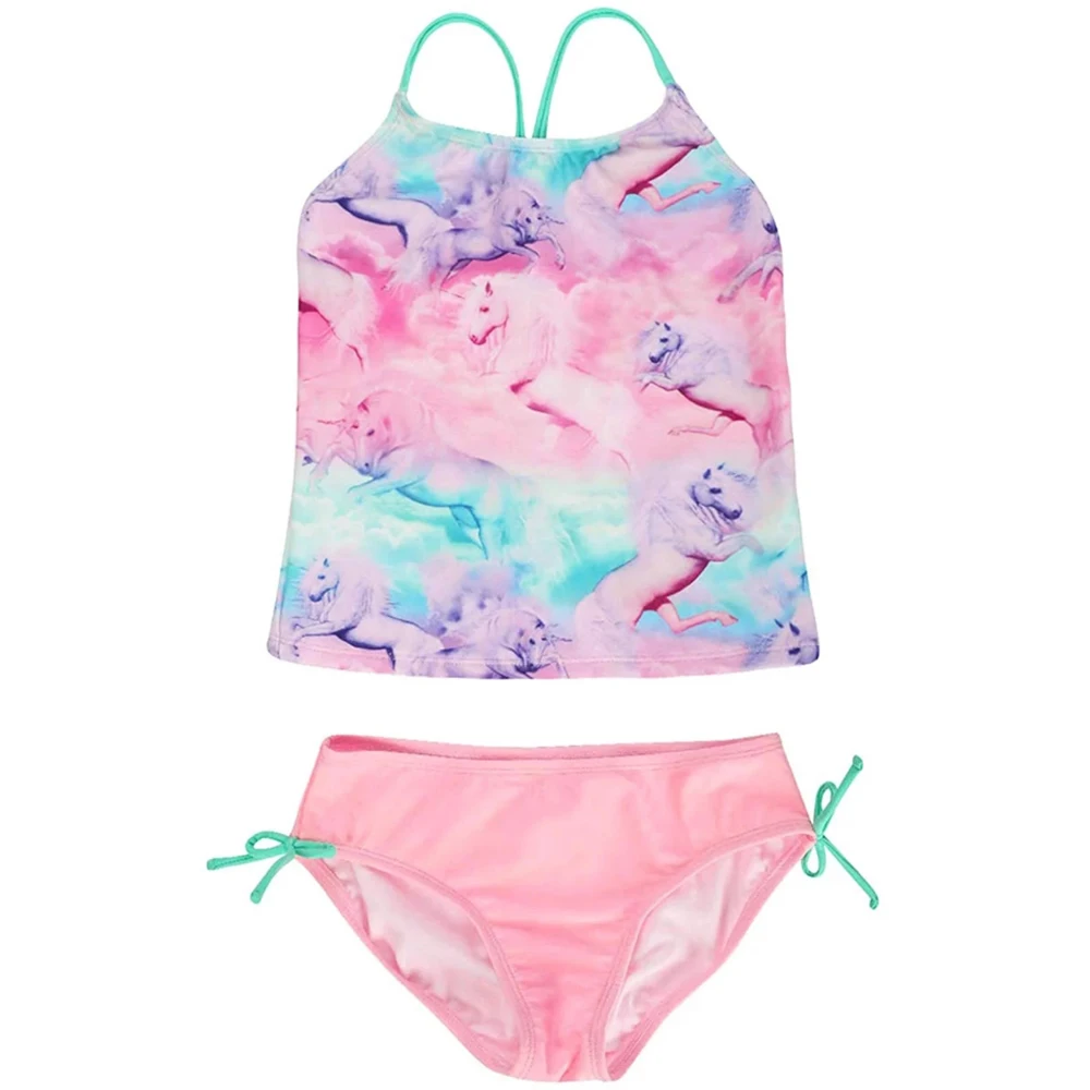 Swimsuit for Girls Two-piece Tankini Swimsuit Children Girls Colorful Unicorn Printed Swim Tops Bri