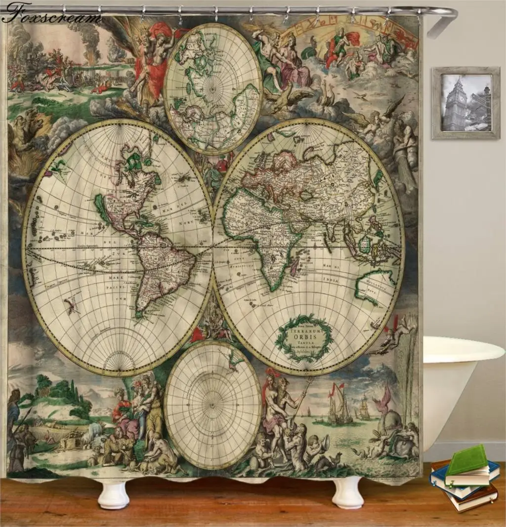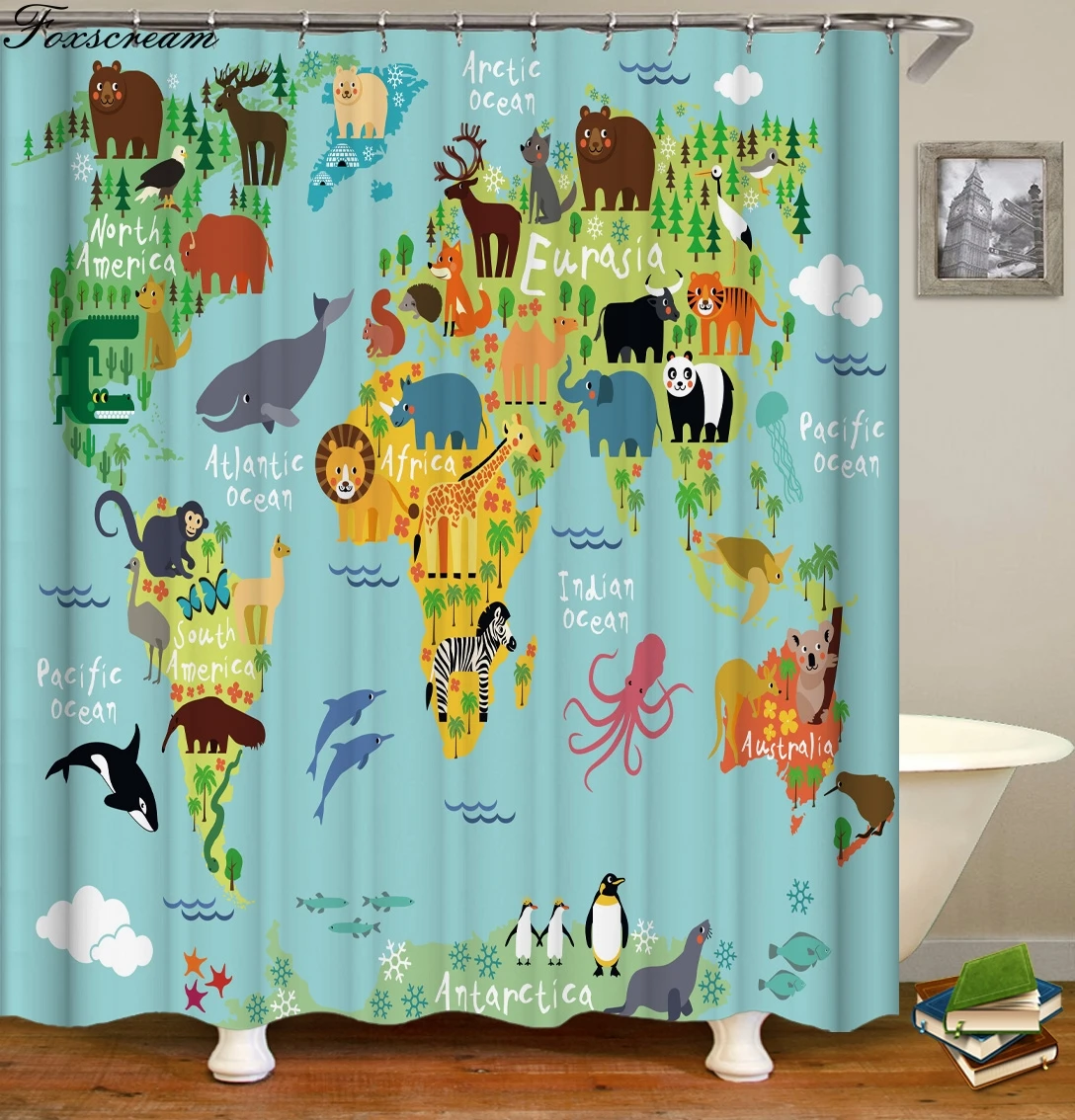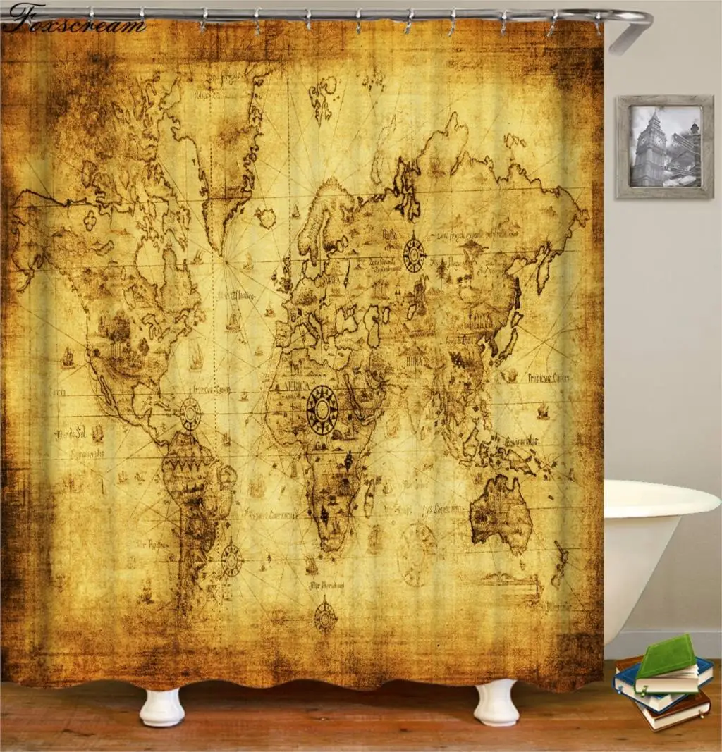 world map fabric shower curtains for bathroom Waterproof curtain for bathroom curtain bath curtain